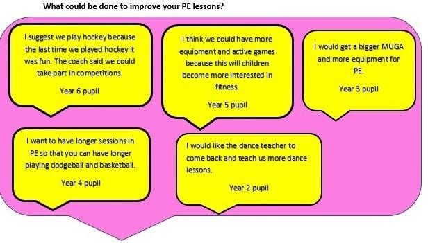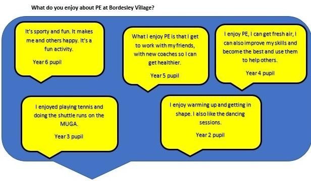 The school is a part of the King Edwards Schools Sport Partnership, they provide CPD opportunities for school staff through training courses and a range of specialist coaches who work alongside teachers in curriculum time to deliver PE. Pupils also have the opportunity to participate in a range of sports clubs after school (Key Stage 1 and Key Stage 2). We also ask pupils about which sports clubs they would like and what they think of PE, their feedback is used to help identify where some of the sports premium money is spent.